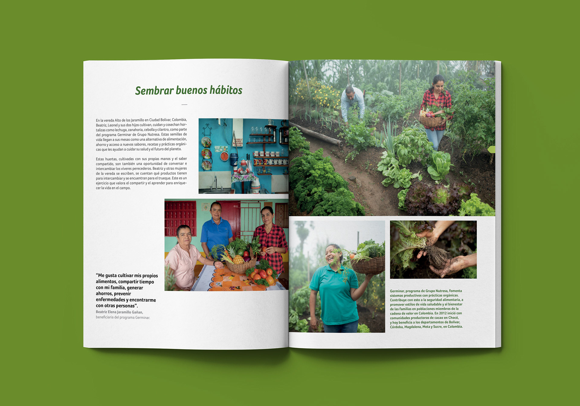 Editorial design for Grupo Nutresa's 2018 Integrated Report, showcasing the company’s financial, social, environmental, and governance performance. Edition: A Future for All of Us.